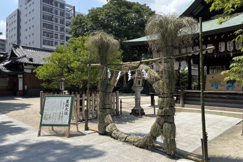 茅の輪くぐりは神拝詞の「祓え給え 清め給え 守り給え 幸え給え (はらえたまえ きよめたまえ まもりたまえ さきわえたまえ)」…日常の言葉で言えば 「お祓いください お清めください お守りください 幸福をお与えください」と唱えながら8の字に3回くぐり抜けるのが作法です。